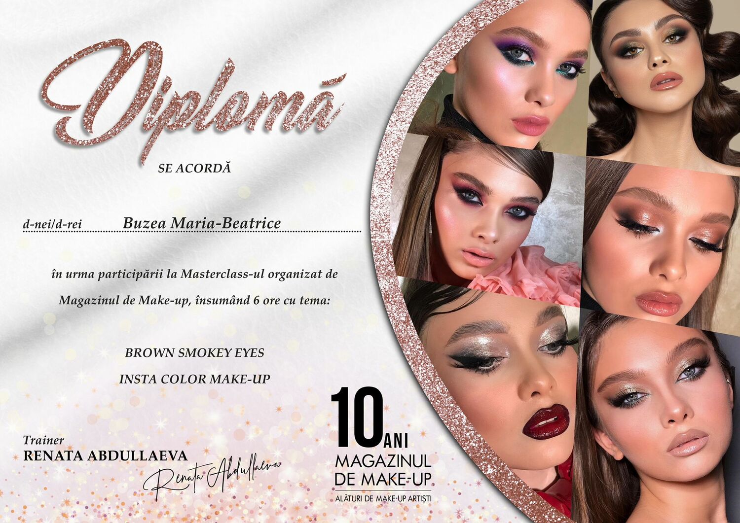 - Am inceput sa lucrez in zona videoclipurilor muzicale inca din 2022, debutand in acesta zona cu un machiaj de lacrimi de aur Daca esti curios sa descoperi mai multe, gasesti aici piesa: https://youtu.be/SHOpksUfJ6k?si=JKBzhpUjPYoByyUe