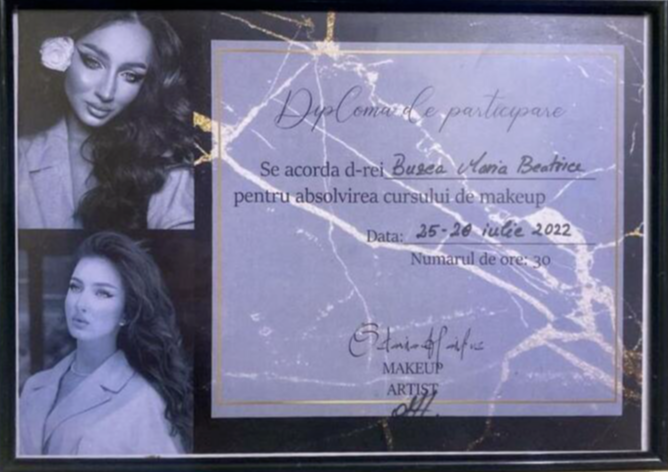 - Am inceput sa lucrez in zona videoclipurilor muzicale inca din 2022, debutand in acesta zona cu un machiaj de lacrimi de aur Daca esti curios sa descoperi mai multe, gasesti aici piesa: https://youtu.be/SHOpksUfJ6k?si=JKBzhpUjPYoByyUe